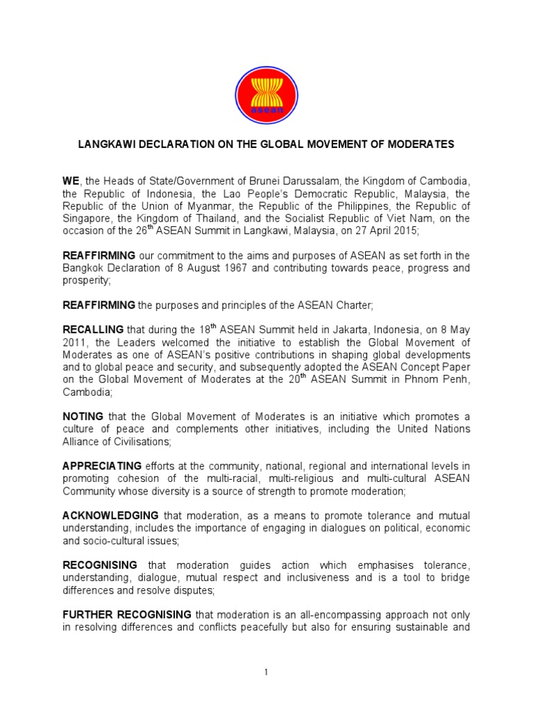 He stated that a global movement of the moderates from all faiths must be built to work together and marginalize the extremists who have held the langkawi declaration on the global movement of moderates signed on the occasion of the 26th asean summit in langkawi, malaysia on 27th april. The theme of the conference was in pursuit of an enduring and just peace. the attendants of the conference. Noting the association's endorsement of the global movement of moderates, he said his country believed that moderation could complement the mission and work of the united nations. Find a translation for global movement of moderates in other languages search global movement of moderates on amazon. What did the 10th east asia summit in malaysia achieve?